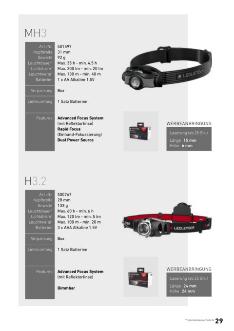 (mit Reflektorlinse) Laserung (ab 25 Stk.)