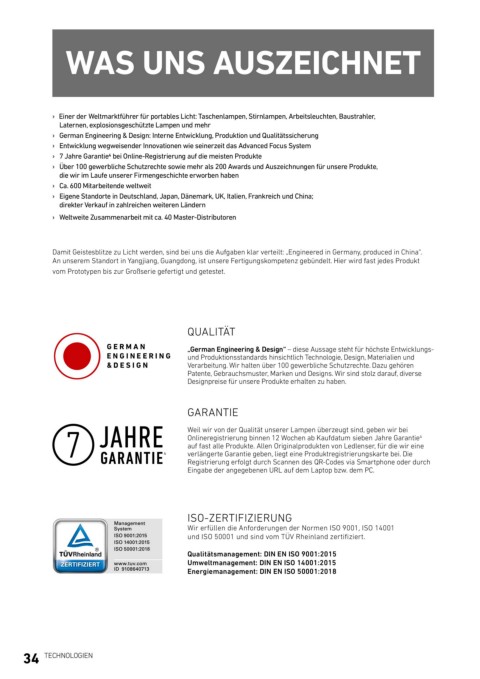 › Einer der Weltmarktführer für portables Licht: Taschenlampen, Stirnlampen, Arbeitsleuchten, Baustrahler,