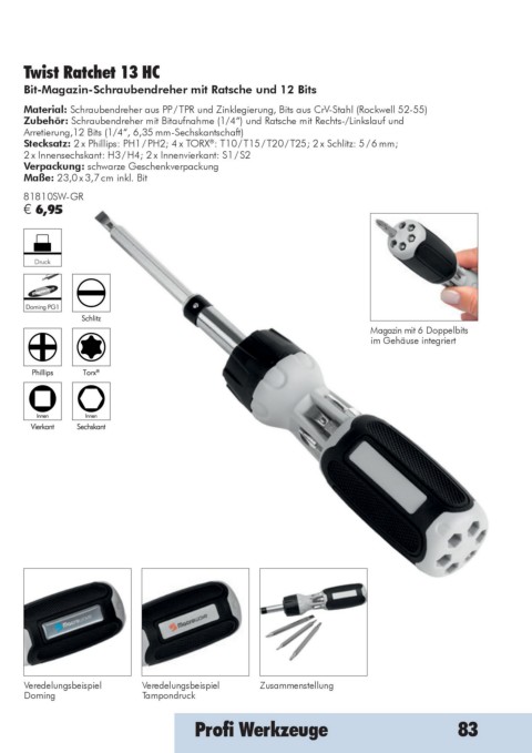 Bit-Magazin-Schraubendreher mit Ratsche und 6 Bits Bit-Magazin-Schraubendreher mit Ratsche und 12 Bits