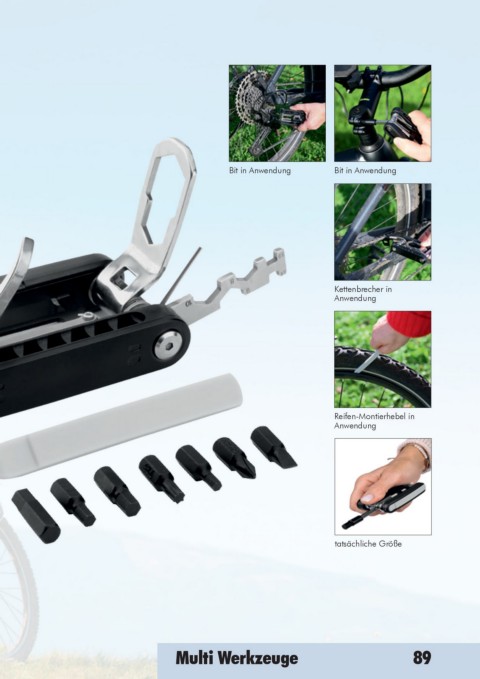 Sechskantschlüssel; 1,5 mm Innensechskantschlüssel; 3,4 mm Speichenwerkzeug; 9,0 mm Innensechs-