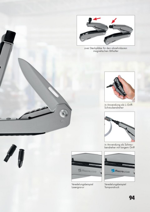 des Multi-Tools ausgeklappt und eingesetzt verwendet werden, magnetischer Bithalter