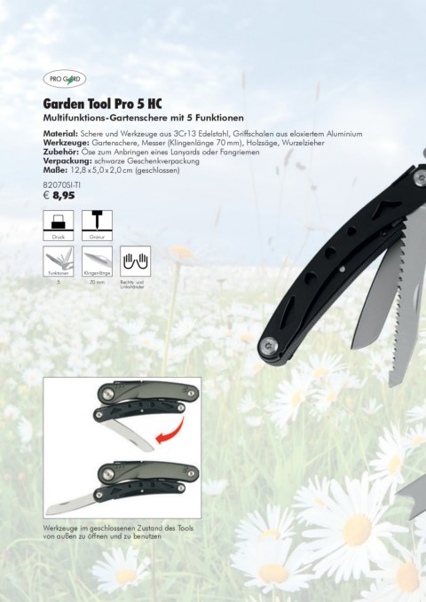 Werkzeuge: Gartenschere, Messer (Klingenlänge 70 mm), Holzsäge, Wurzelzieher