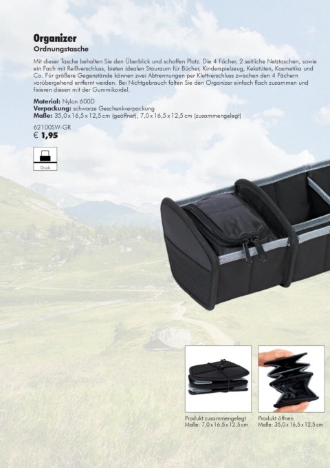 vorübergehend entfernt werden. Bei Nichtgebrauch falten Sie den Organizer einfach flach zusammen und