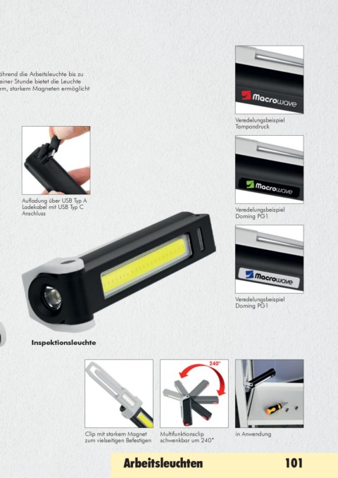 Lichtwert: Arbeitsleuchte 250 Lumen, Inspektionsleuchte 140 Lumen Veredelungsbeispiel