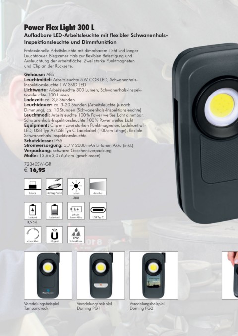 Lichtwerte: Arbeitsleuchte 300 Lumen, Schwanenhals-Inspek-