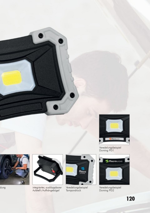 Praktische Arbeitsleuchte mit Aufstellbügel und starken Magneten.