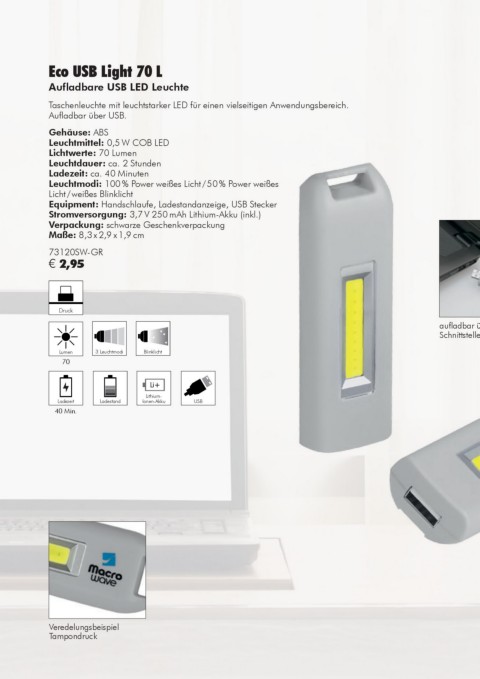 Leuchtmodi: 100 % Power weißes Licht / 50 % Power weißes
