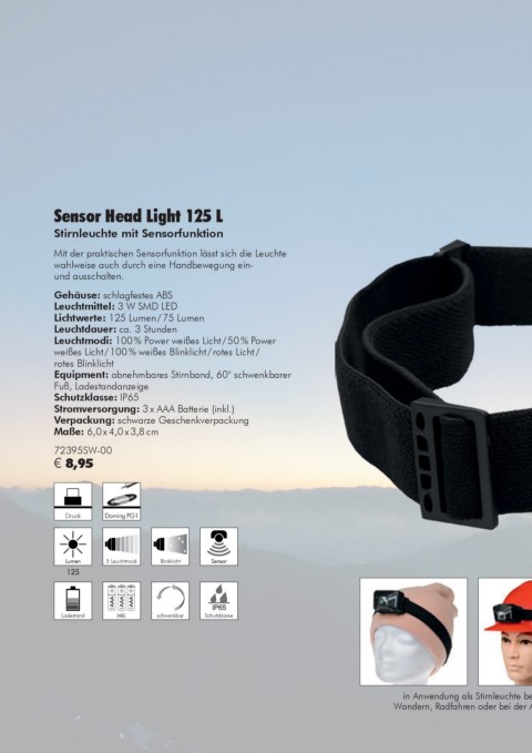 in Anwendung als Stirnleuchte beim mit Sensorfunktion