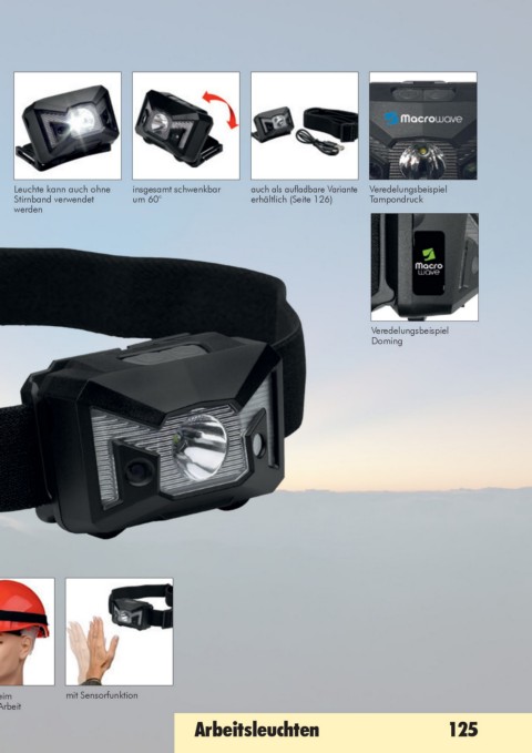 in Anwendung als Stirnleuchte beim mit Sensorfunktion