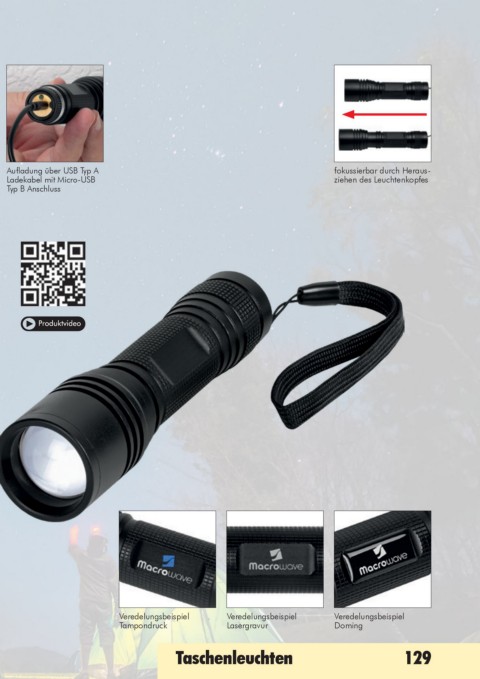 Aufladbare LED Taschenleuchte mit Fokussierung