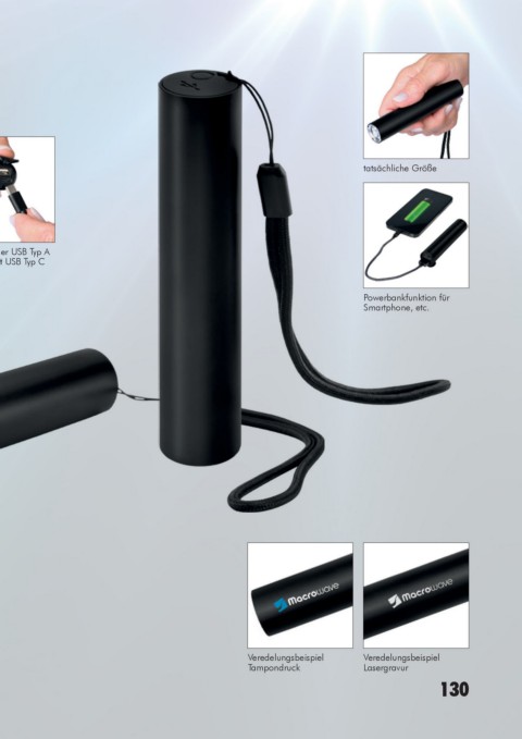 Equipment: Handschlaufe, Ladekontroll-LED, USB Typ A / USB Typ C