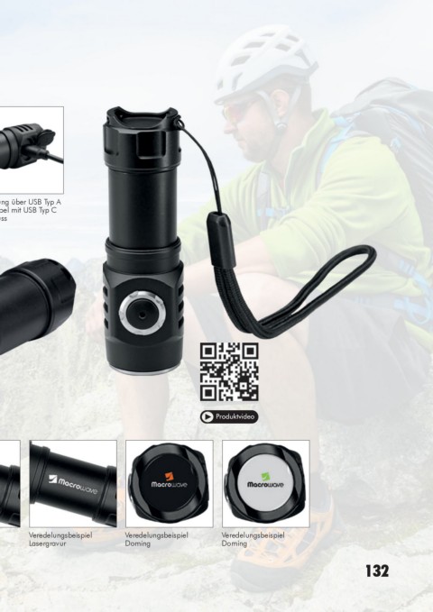 Stromversorgung: 3,7 V 700 mAh Li-Ionen Akku Typ 16340 (inkl.) Aufladung über USB Typ A