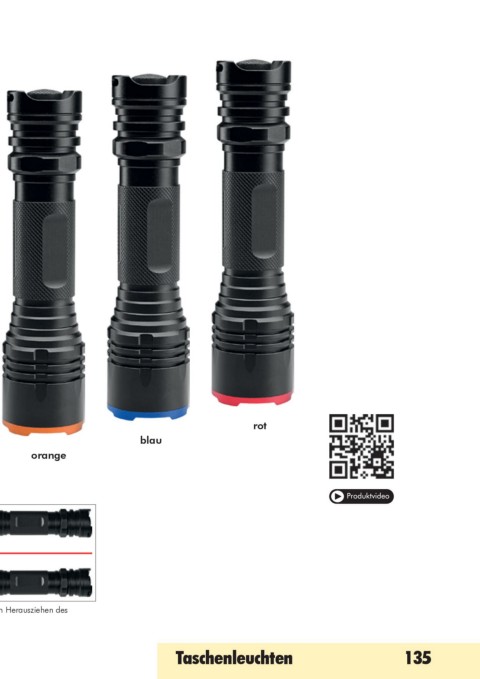 Nova Light 1200 L rot blau orange schwarz silber Produktvideo tatsächliche Größe Ring am Leuchtenkopf in Ladestandanzeige fokussierbar durch Herausziehen des unterschiedlichen Farben Leuchtenkopfes erhältlich Taschenleuchten 135