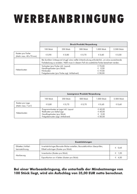 100 Stück liegt, wird ein Aufschlag von 35,00 EUR netto berechnet.