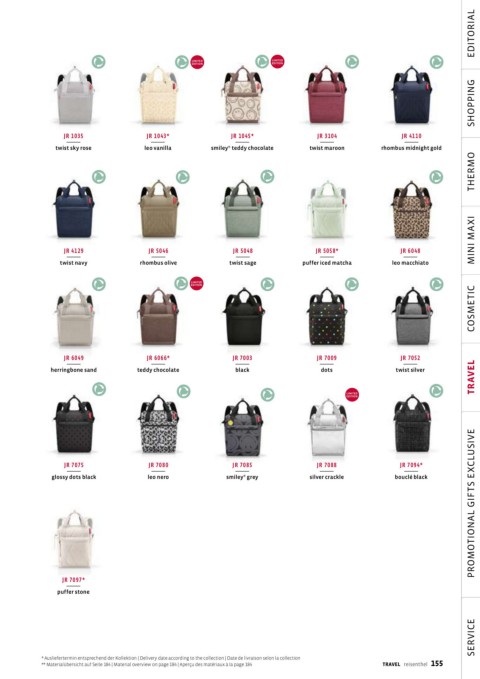 ** Materialübersicht auf Seite 184 | Material overview on page 184 | Aperçu des matériaux à la page 184 TRAVEL reisenthel 155