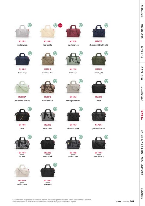 ** Materialübersicht auf Seite 184 | Material overview on page 184 | Aperçu des matériaux à la page 184 TRAVEL reisenthel 161