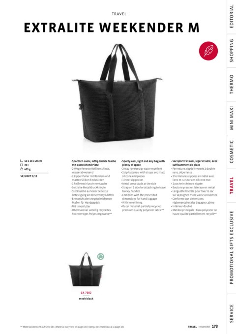** Materialübersicht auf Seite 184 | Material overview on page 184 | Aperçu des matériaux à la page 184 TRAVEL reisenthel 173