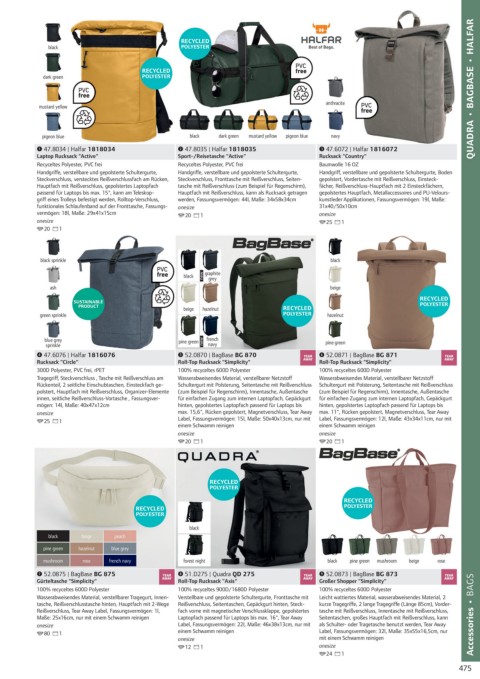 47.6076 | Halfar 1816076 52.0870 | BagBase BG 870 52.0871 | BagBase BG 871