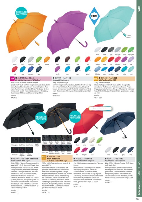Schonung der Umwelt Wasser und Energie des Stahlstocks, waterSAVE® Materialien klein und leicht, Windproof-System für messer: 116cm, geschlossene Länge: 33cm Accessories • UMBRELLAS