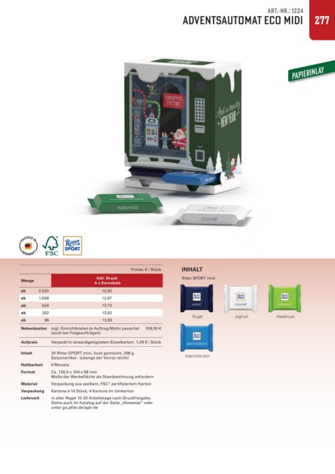 Inhalt 24 Ritter SPORT mini, bunt gemischt, 396 g