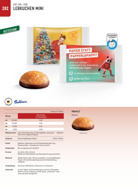Nebenkosten zzgl. Einrichtkosten je Auftrag/Motiv pauschal 229,00 € Lebkuchen