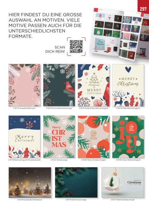 219176 Weihnachtsgruß Winterlandschaft 219181 Winterzweige 219182 Rote Christbaumkugeln 219184 Grüner Weihnachtsgruß