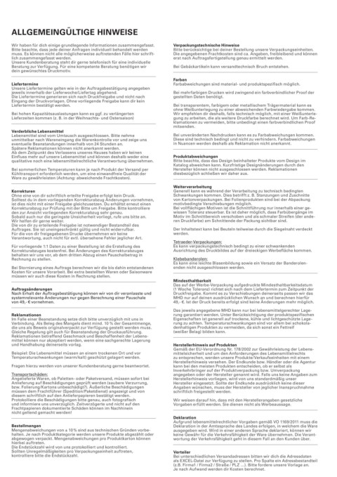 Gleiche Regelung gilt auch für Beanstandung der Druckausführung. (weißer Belag) bilden kann.